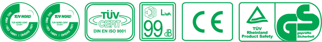 Certificaciones ISO 9001, ISO 14001 y normas DIN europeas.